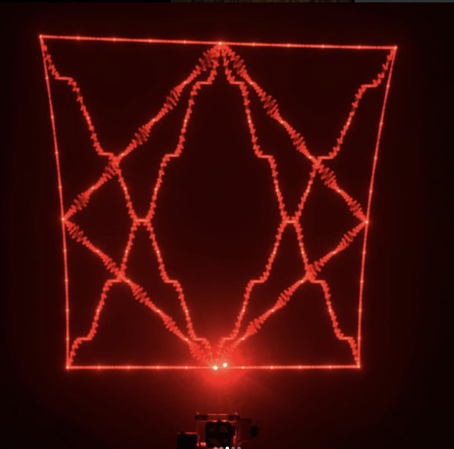 The device is essentially a laser beam steering system that can project a laser point on a Cartesian plane. Here’s a video: