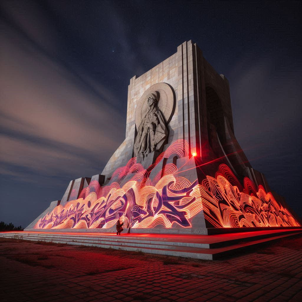 Take a long exposure picture, send it to the operator, and let them overlay/draw their desired graffiti art on it.