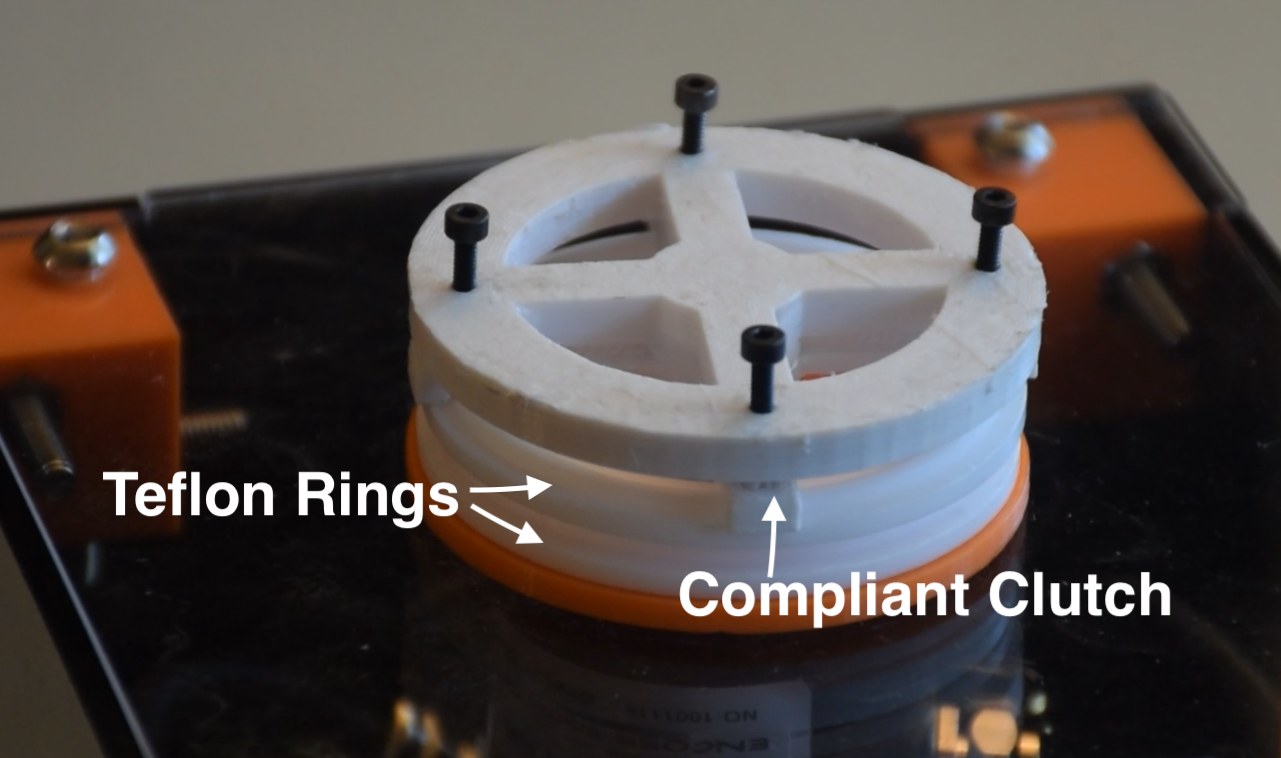 The knob has an inner teflon ring that is meshed to a teflon ring base because teflon slips easily. The knob-ring’s downward force can be controlled by a mechanism with screws, that helps set the desired friction for rotation.