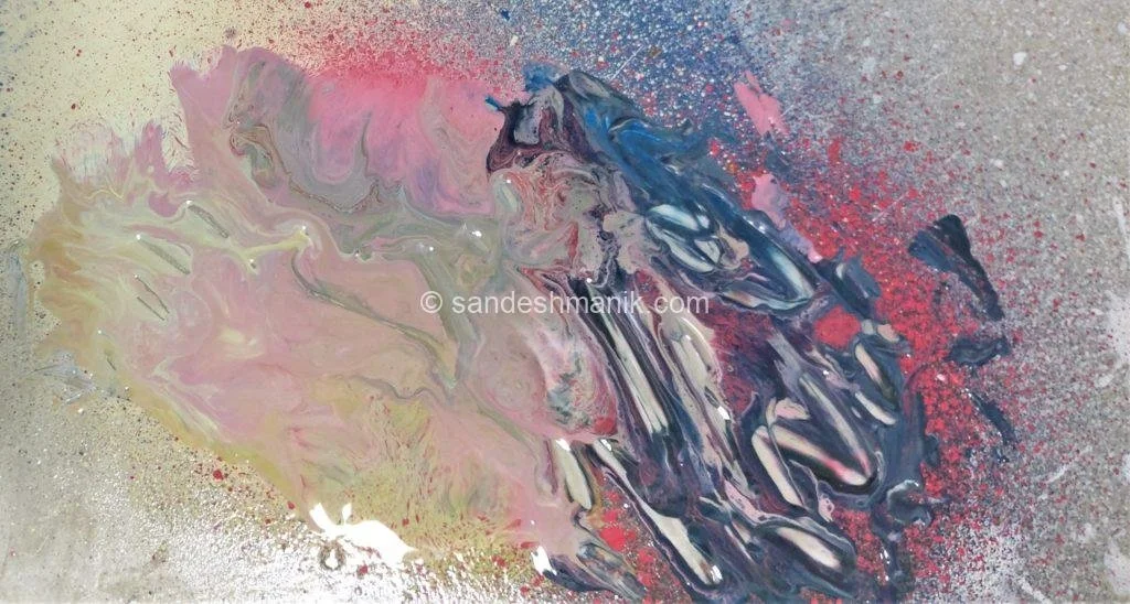 When prototype 3 failed, I seriously considered quitting. But then I noticed these colors on the ground from a paint spill—beautiful shades created from just basic colors mixing naturally. Somehow, seeing this accidental masterpiece gave me the push to keep going. :)