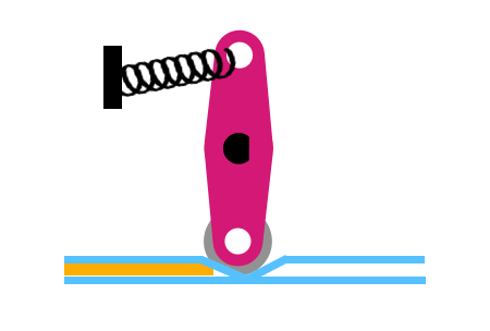 Pinching mechanism, combined with a spring for a normally-closed design.