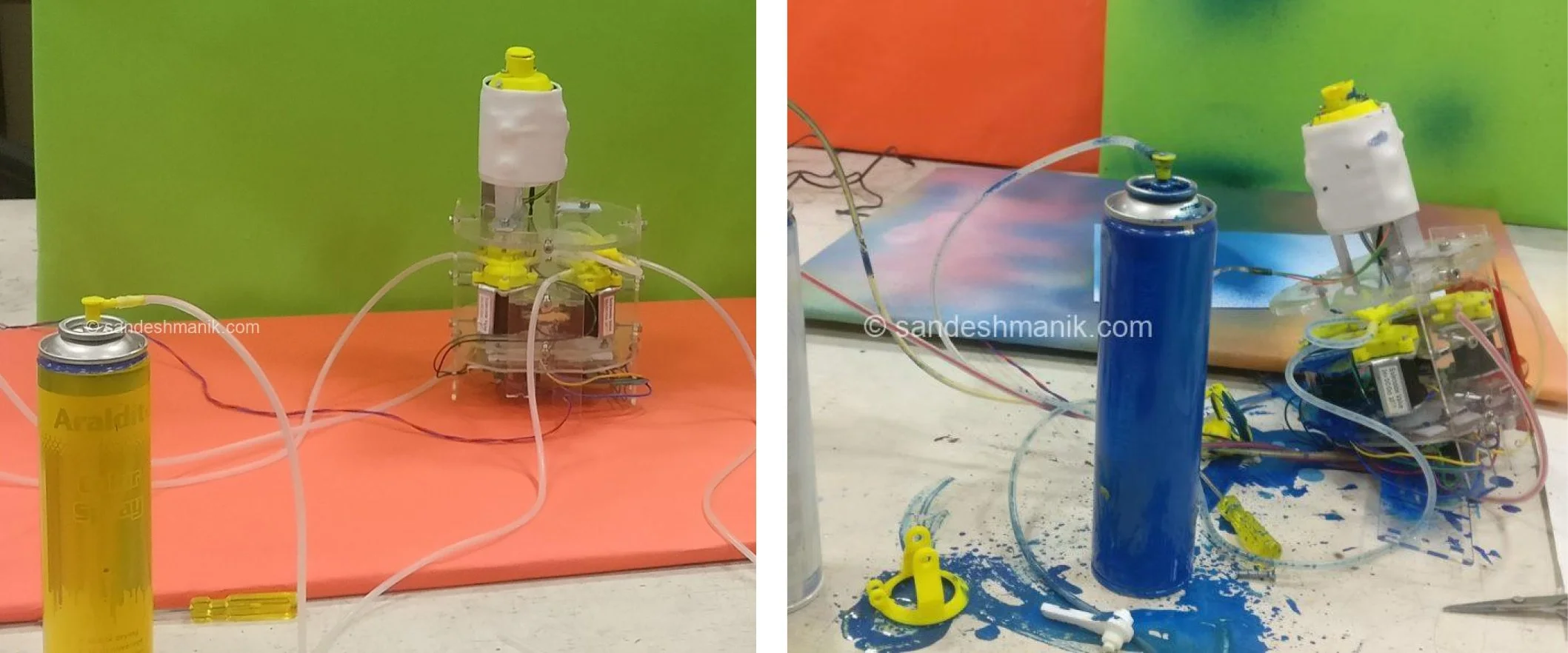 The possibilities for enhancing this machine are endless—imagine integrating it with a camera and wall-tracking system to create an autonomous mural-making robot. Real-time spray paint color mixing opens up creative painting possibilities for both humans and robots that have never existed before.