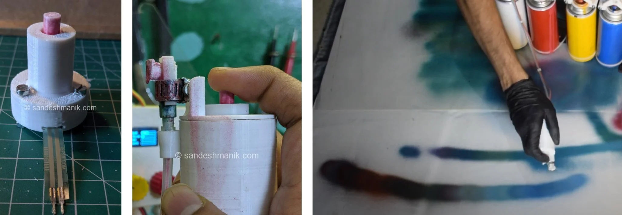 Work with Store-Bought Cans: The machine had to use regular spray paint cans available in stores—no custom cartridges or proprietary refills. This also meant relying on the cans' built-in pressure rather than external pumps, keeping the system simple.