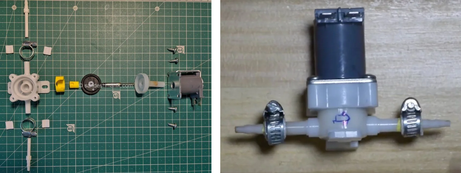 The modified water-purifier solenoid valves with 3-D printed fillers and connectors